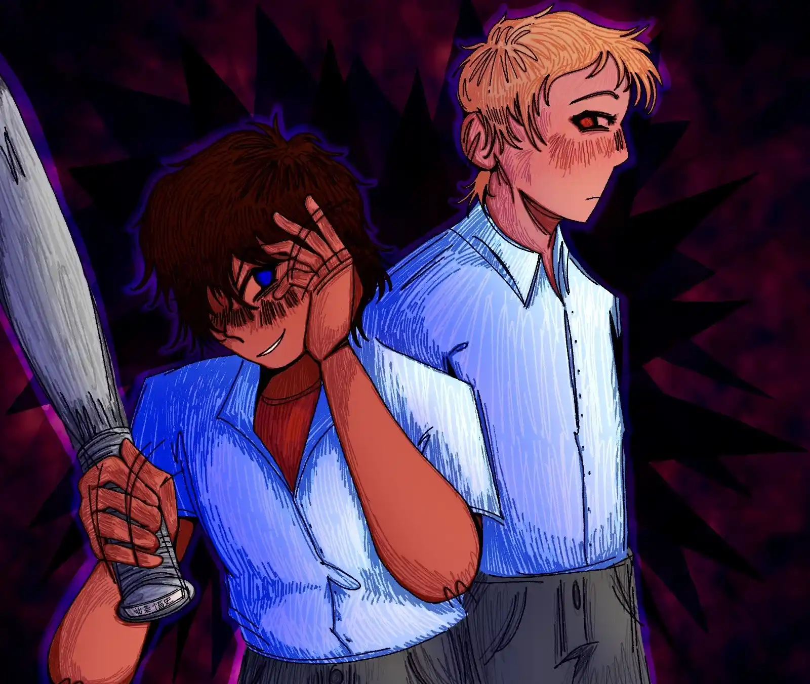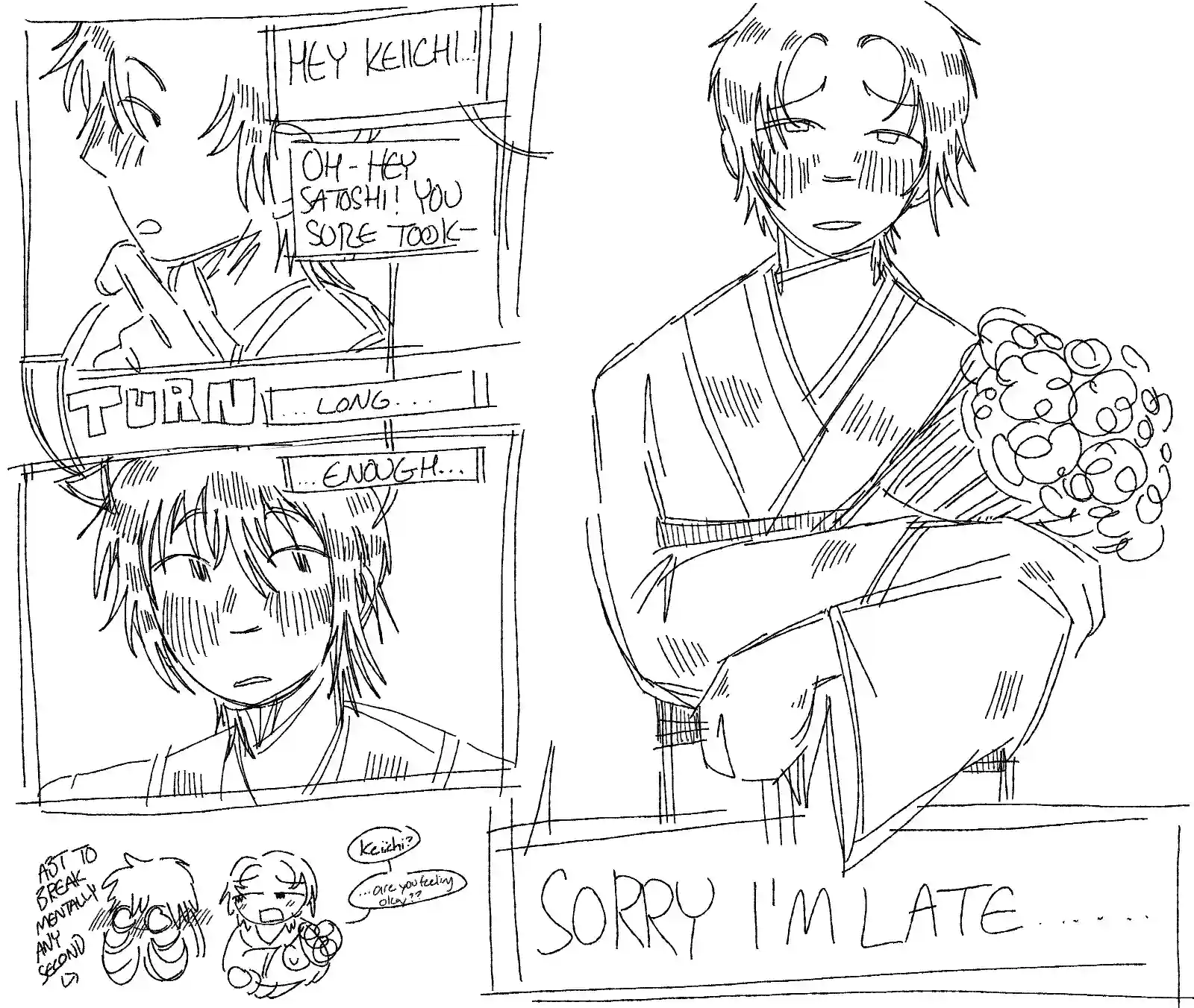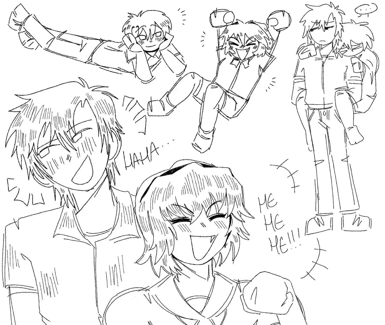 ★ i was on some like insane mindset around this time idk why lol. first drawing is a redraw of a official art of keiichi and rena from gou(??)